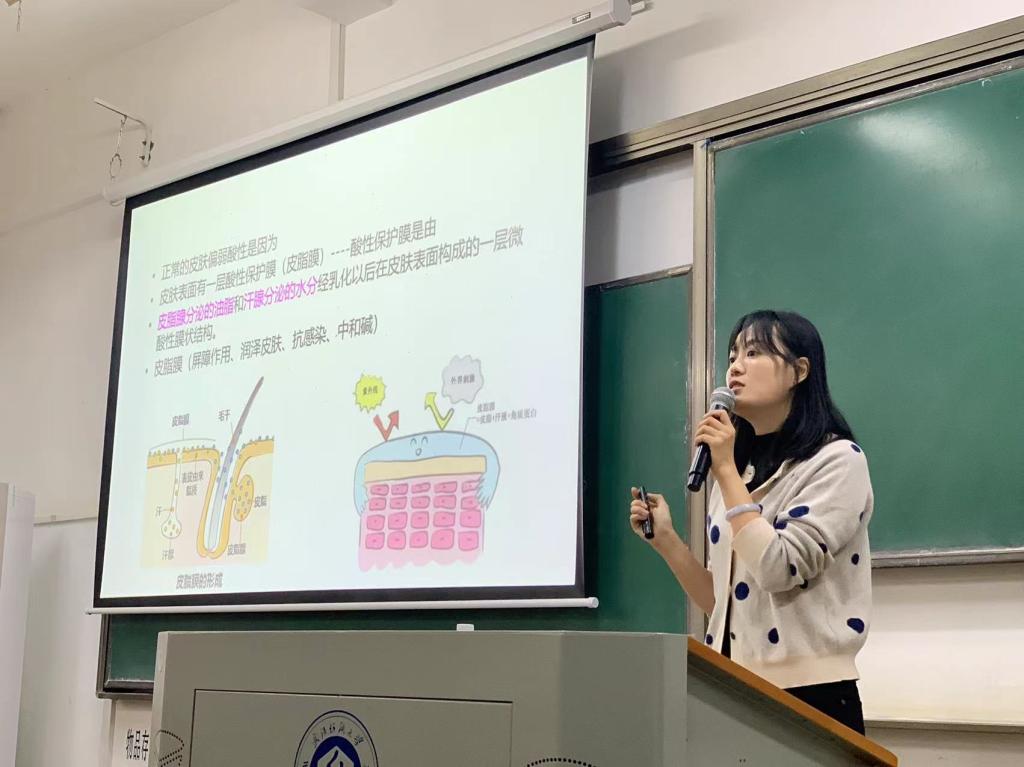 此次讲座共有四个模块,分别是皮肤概括,基本结构,皮肤微生态,皮肤免疫。谢君博士准备了丰富的实际案例,深入浅出地将与化妆品专业相关的皮肤科知识给大家进行了介绍,既激发了员工们的学习兴趣,又便于理解,还补充了皮肤疾病与化妆品方面的应用知识,贴和同学们的实际生活。此外,为了充分调动同学们的积极性,谢君博士和同学们一起交流了平时的护肤方法及一些化妆常识,向同学们推荐了几款国产护肤佳品,还对几个皮肤问题对症下药,强调保湿剂的重要性,令同学们受益匪浅。