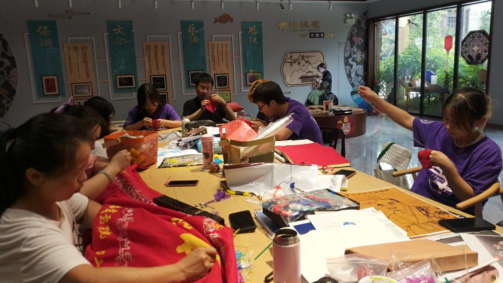 实践团来到梅开二度文化有限公司,这家公司是黄梅挑花文化与现代管理制度完美融合的代表企业,在黄梅挑花传承工艺与现代生产技术结合方面具有丰富的经验。洪利作为这家公司的创始人以及黄梅挑花传承人,热情地接待了实践团,为他们讲述了黄梅挑花的文化与发展。通过她的讲解以及对其采访,了解了黄梅挑花的发展历史以及挑花的精髓。在她讲述黄梅挑花的发展时,同学们也体会到了挑花非遗传承人在传承过程中的艰辛与不易,感叹非遗传承人高超精湛的制作工艺,敬佩她坚守初心、臻于至善,学习她视非遗传承为己任,不断探索非遗保护新途径,践行新时代大国工匠的使命。