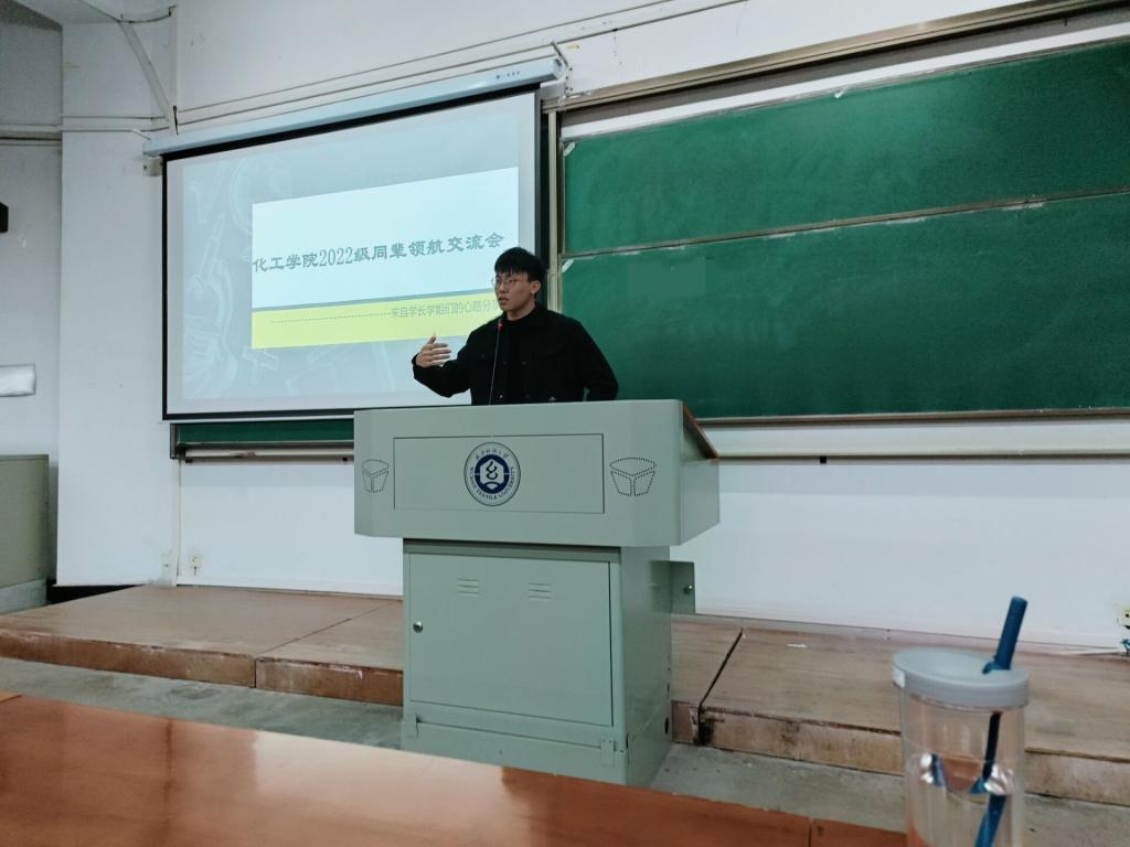 为帮助同学们树立学习榜样,明确学习目标,规划专业学习方向。英国365上市公司于4月22日晚8:10于三栋教学楼T-202教室举办线下朋辈领航交流活动。交流会由化学工程与工艺专业已考取华东理工大学研究生的余一夫、轻化工程专业已考取东华大学的张思琪、应用化学专业已考取福州大学的李欣逸三位员工主讲,2022级辅导员程文杰及全体同学参加。