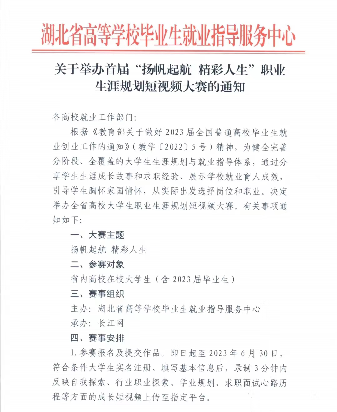 2023年4月湖北省首届职业生涯规划短视频大赛上线,根据《关于举办首届“扬帆起航 精彩人生”职业生涯规划短视频大赛的通知》精神,公司积极组织申报。