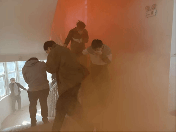 讲座结束后,在“春风化雨”员工成长驿站---1栋员工宿舍C座进行火灾应急逃生疏散演练。消防警报拉响后,员工们严格按照逃生疏散演练要求,紧张快速从最近安全出口有序疏散撤离。演练结束后,张建现场对演练活动中存在的问题和不足进行了点评和总结。