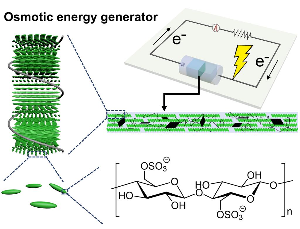 渗透能,也称盐差能,是蕴藏于不同浓度溶液之间由盐度差异产生的能量,在自然界中广泛存在于河水与海水的交界处,是一种前景广阔的“蓝色能源”,具有来源稳定、获取方式简单、绿色可持续及储量巨大等特点。