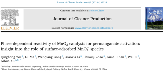 团队还研究了二氧化锰的晶型对KMnO4活化效率的影响,发现其活性大小遵循以下规律α-MnO2> δ-MnO2> β-MnO2> γ-MnO2,并和这些催化剂吸附KMnO4的能力直接相关。进一步使用化学探针技术等多种手段分析了吸附态KMnO4的反应机理,发现随着氧化电位的增强,其电子转移能力显著提高,但氧转移能力下降。本文可为KMnO4多相活化的研究提供新的视角。相关成果在Journal of Cleaner Production(2023, 419,138325)上发表,第一作者为硕士研究生吴青虹,通讯作者为徐爱华教授。论文链接:https://doi.org/10.1016/j.jclepro.2023.138325。