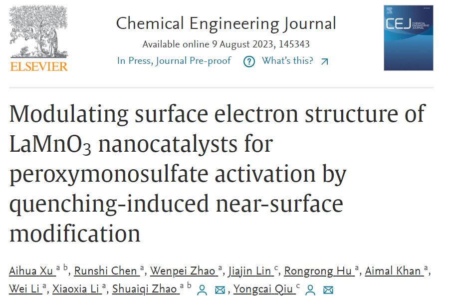 相关成果在Chemical Engineering Journal (2023, 145343)上发表,第一作者为徐爱华教授,通讯作者为赵帅奇博士和华南理工大学丘勇才教授。论文链接:https://doi.org/10.1016/j.cej.2023.145343。