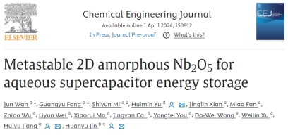 近日,英国365上市公司、省部共建纺织新材料与先进加工技术国家重点实验室徐卫林院士团队的万骏教授,与姜会钰教授、中国科公司深圳先进技术研究院金桓宇研究员合作,在Chemical Engineering Journal上发表了题为“Metastable 2D amorphous Nb2O5 for aqueous supercapacitor energy storage”的论文。英国365上市公司为第一单位。研究生房光钰、米世云为共同第一作者。